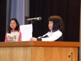 お話し会ラストスペシャル 20年以上の長きにわたって続けられていた「お話し会」の活動が、来年の閉校のため、今回で終了することになりました。「お話し会ラストスペシャル」で発表されたお母さん方の心のこもった読み聞かせに、全校児童が聞き入っていました。 |
