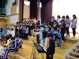 11月の全校朝会 今月の全校朝会では、図書委員会から読書月間の取り組み方について説明がありました。また、各学年向けに「おすすめの本の紹介」もありました。 全校朝会終了後には、閉校記念式典(11月29日(日)開催予定)で歌う全校合唱の練習を行いました。 |