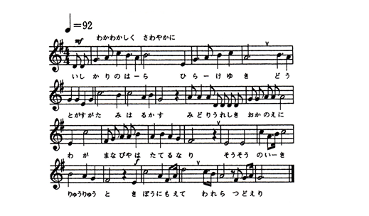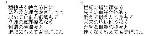 1番の歌詞をクリックすると、校歌(1番)を聴くことができます。
